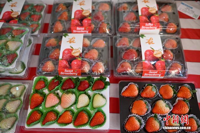 图为年夜会现场闪现的草莓。中新社记者 于陆地 摄
